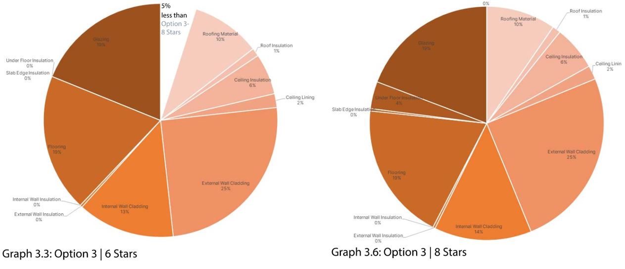 • Option 3 represented a heavyweight system featuring brick cavity walls, the most common choice for WA, a concrete slab, and a tiled roof.